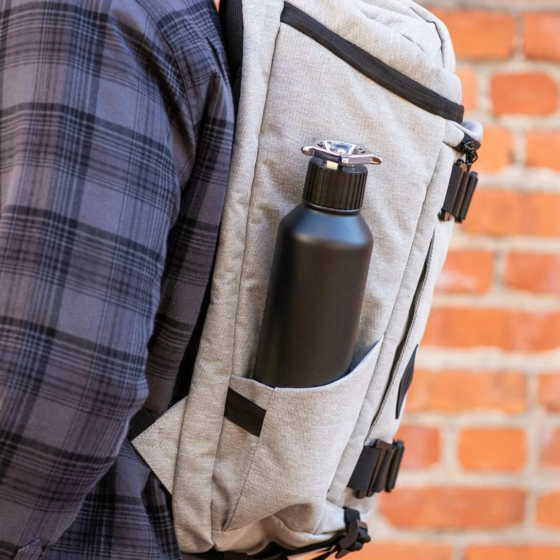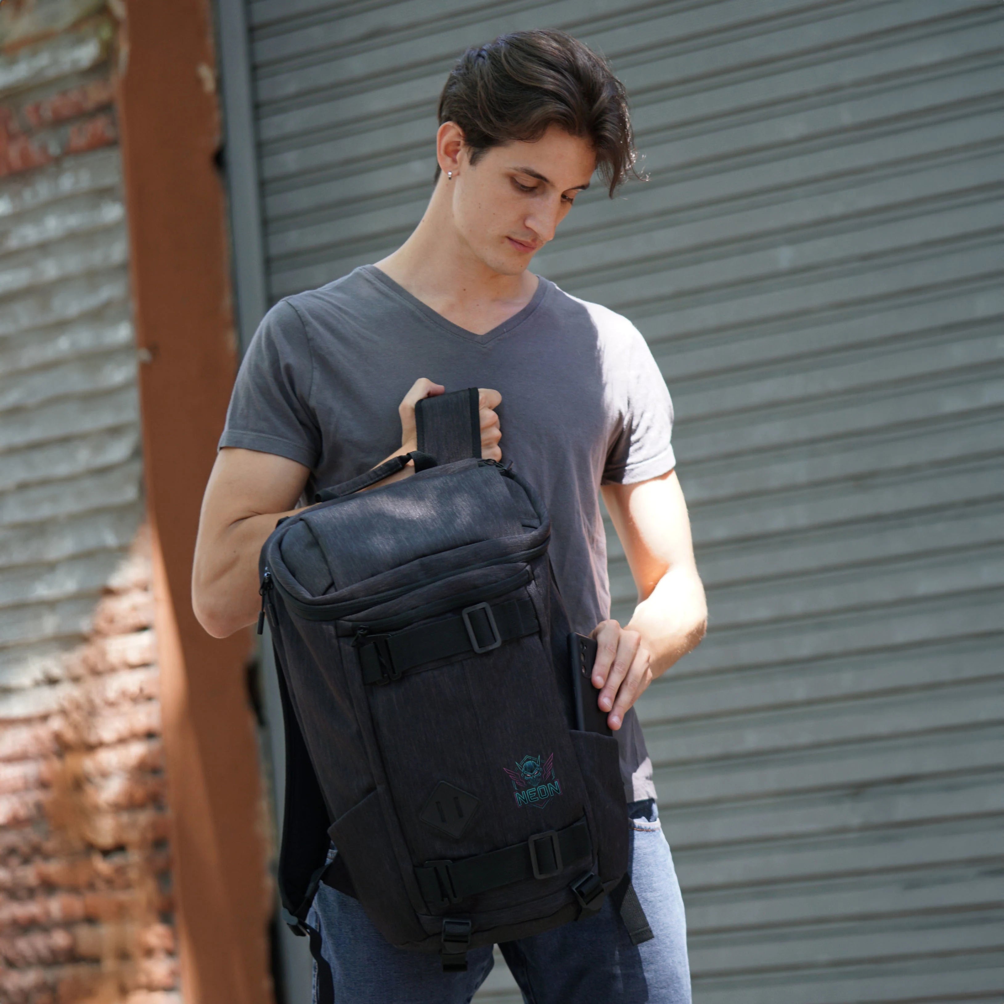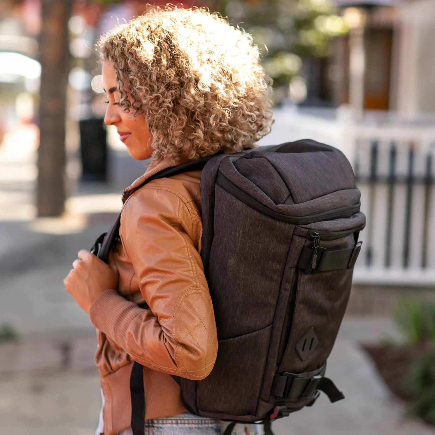 - Front and bottom looping straps to carry a jacket, blanket, or yoga mat
