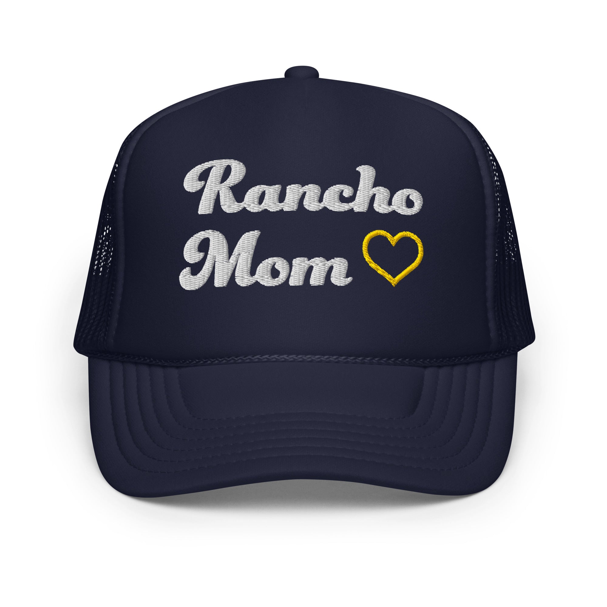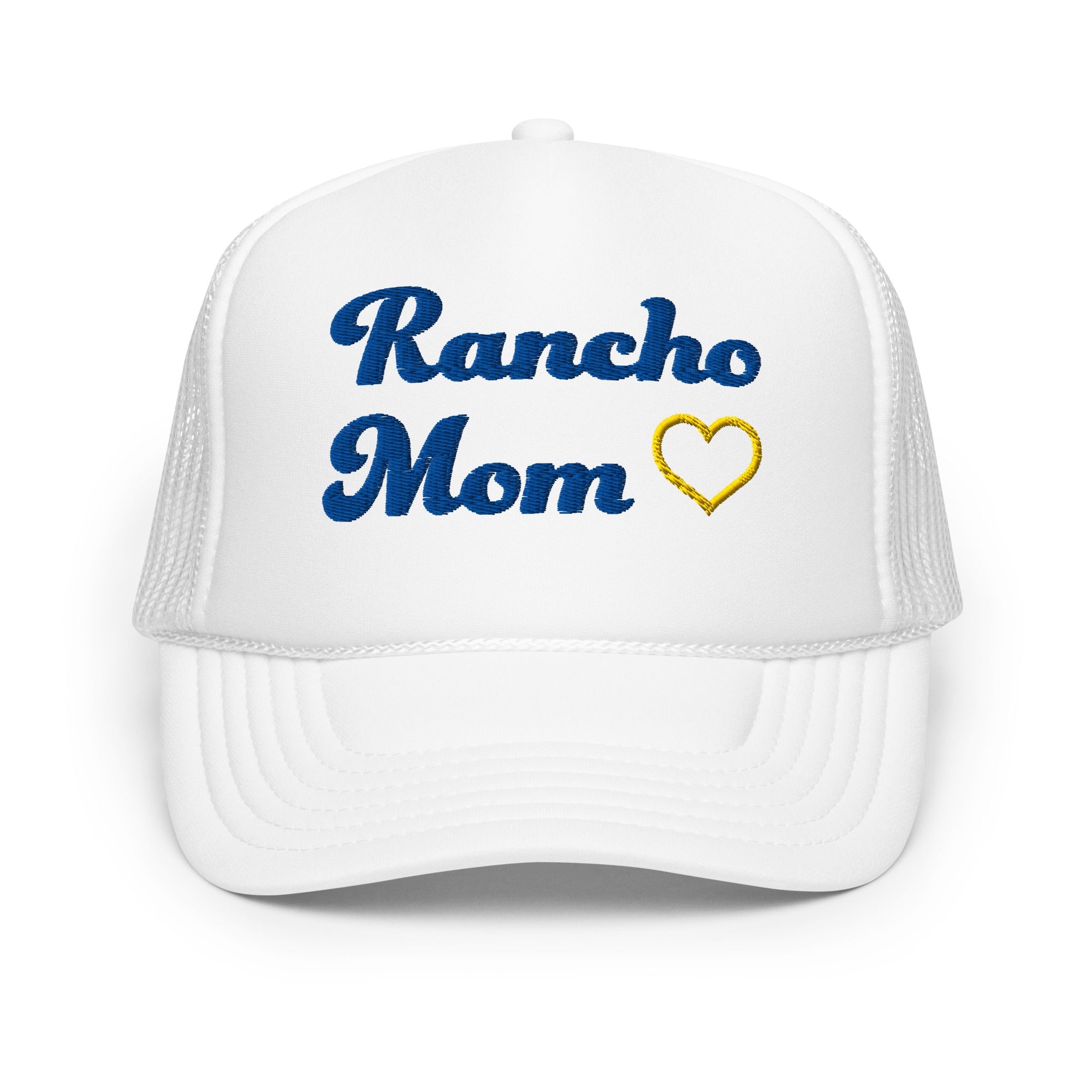 Show your love of Rancho with your own Rancho Mom Foam Trucker This hat is made with high-quality polyester and foam that guarantees a premium look and feel. The foam trucker hat has an adjustable snap that ensures a comfortable fit, and the mesh back provides great breathability. The matching color braid gives the hat an extra oomph. Style it with your favorite outfit any time of the day.