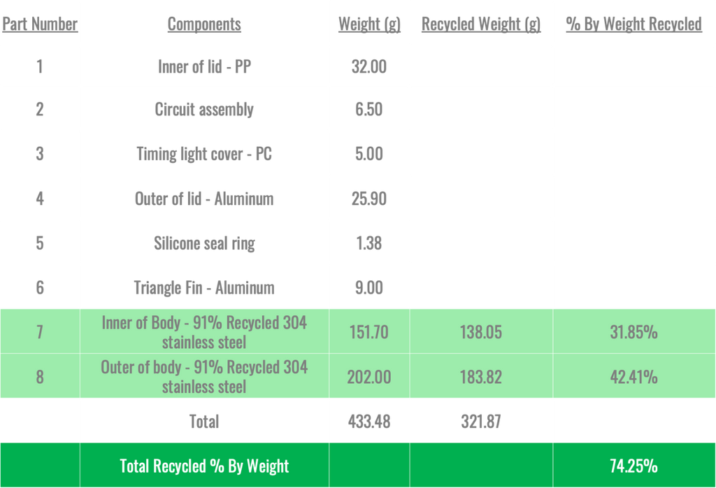 - Made from Recycled Stainless Steel