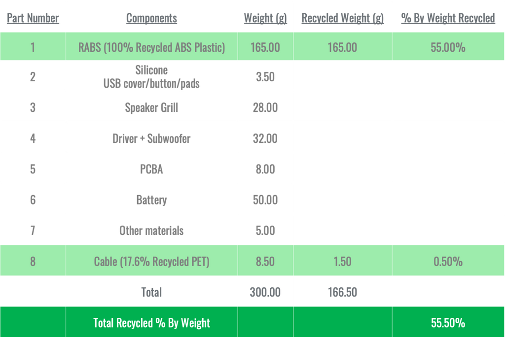 - Made from 100% Recycled ABS Plastic