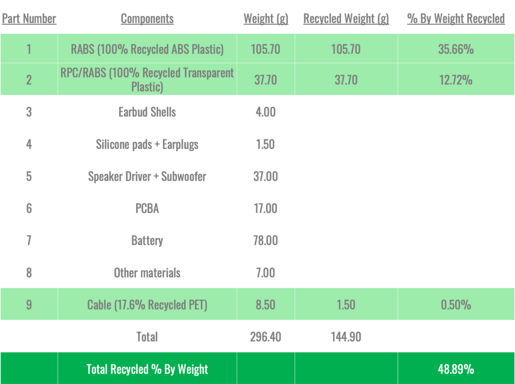 - 5+ hours of playtime on earbuds up to 625 hours if utilized solely for earbud charging