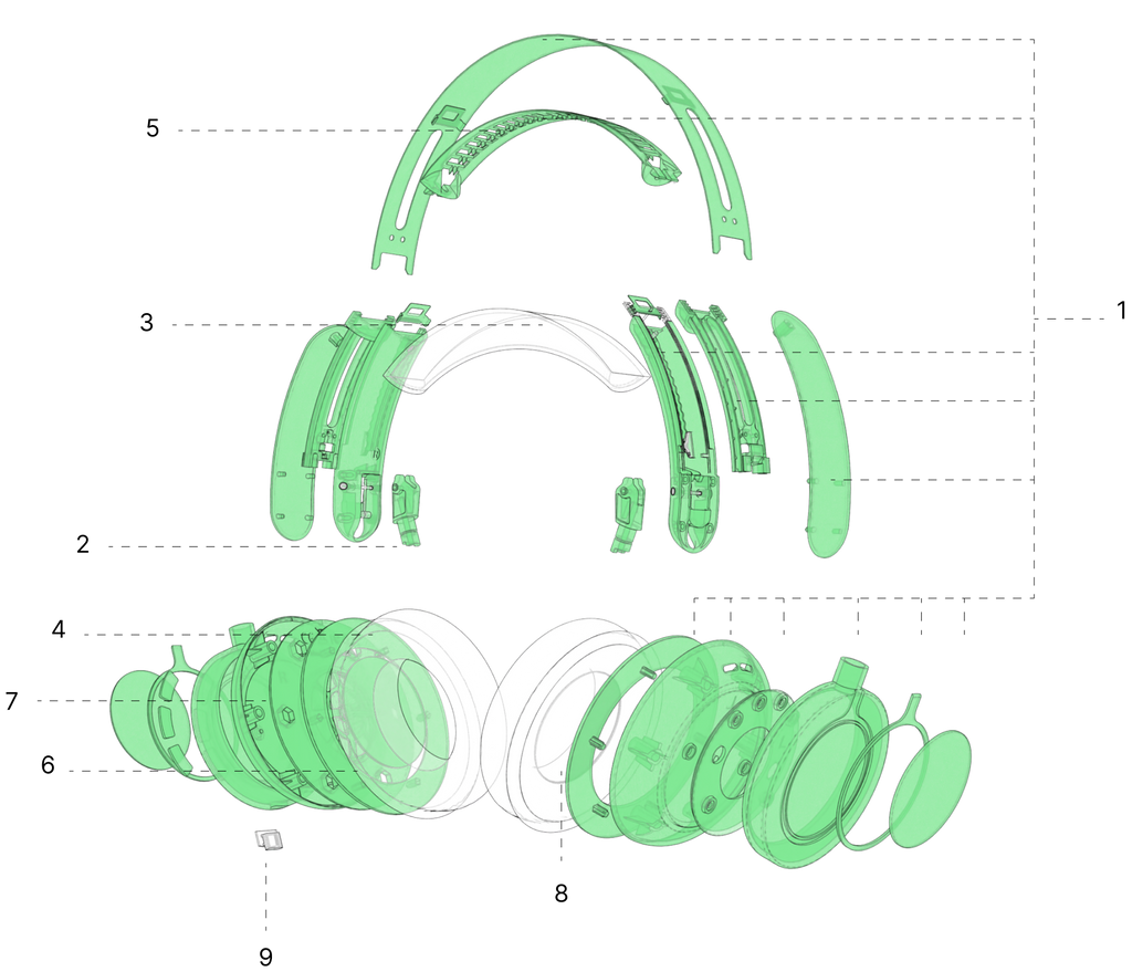 - Removable plates on both ears for printing