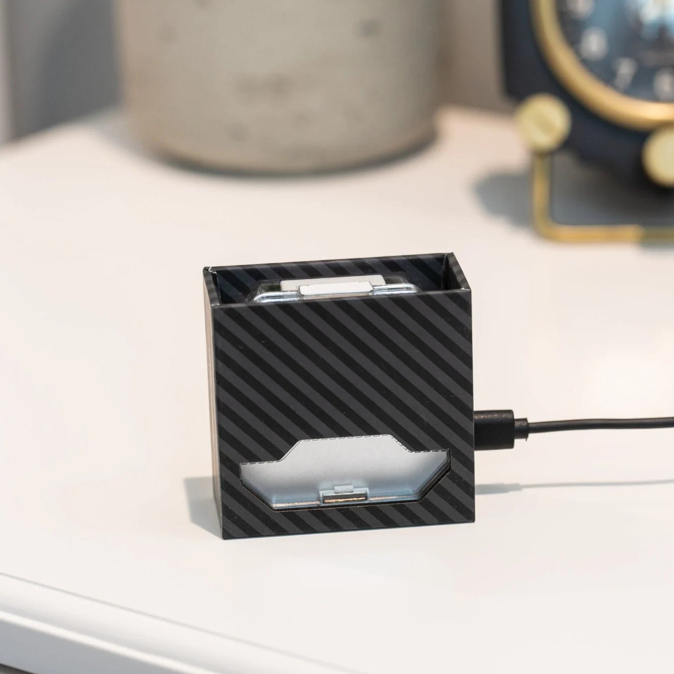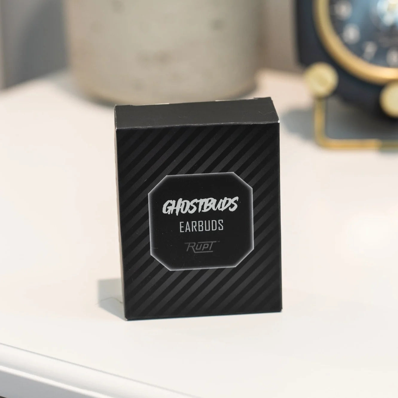 GHOSTBUDS packaging transforms into a: CHARGING STAND